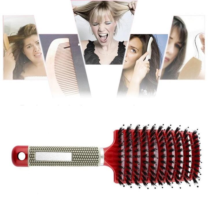 La Boutique Keraliss-lissage vous propose une brosse à cheveux ou (peigne de Massage du cuir chevelu), pour cheveux cheveux humide et bouclé ou pour Salon de coiffure. Sa poignée est en caoutchouc, plus douce et plus confortable, sa conception antidérapante le rend pratique à tenir, donne une apparence élégante avec un design arqué.
