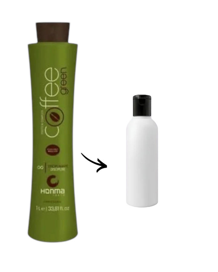 - 100 ml ou 200 ml – Reconditionné : portions du produit original, transférées dans des flacons cosmétiques neufs à usage professionnel