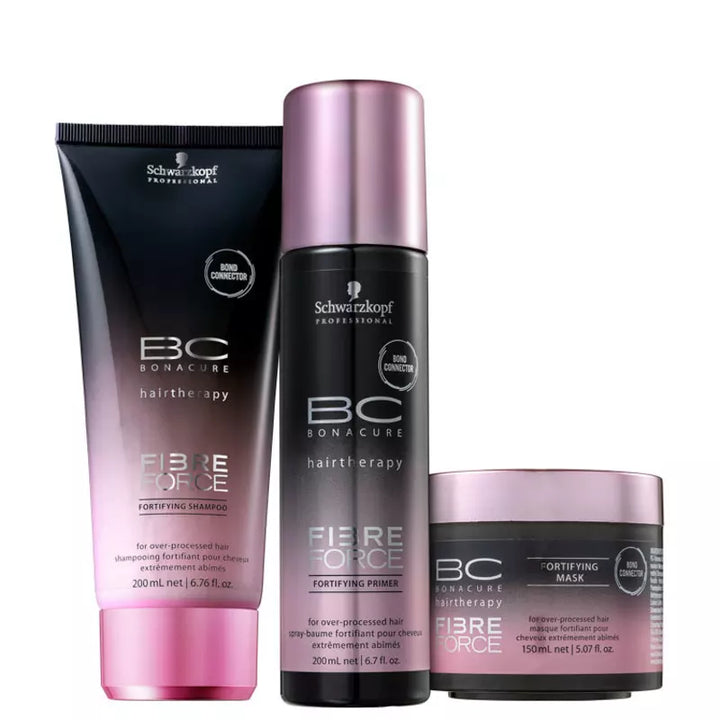 La gamme de produits BC Fibre Force contient une formule spécialement conçue pour les cheveux très abîmés qui redonne aux cheveux leur qualité. La résistance, la réparation et la force sont obtenues grâce à une formule unique à base de kératines micronisées et identiques aux cheveux qui pénètrent profondément dans la fibre capillaire et reconstituent le complexe membranaire cellulaire. L'utilisation de BC Fibre Force est particulièrement recommandée après des traitements chimiques pour contrecarrer les agressions extérieures des cheveux. La régénération et le renforcement des fibres capillaires sont garantis par les produits BC Fibre Force .