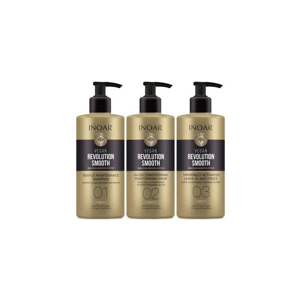 INOAR VEGAN REVOLUTION SMOOTH permet 9 protocoles d'application, lisse, réduction de volume, suppression des frisottis, définition des boucles, hydratation, encore construction