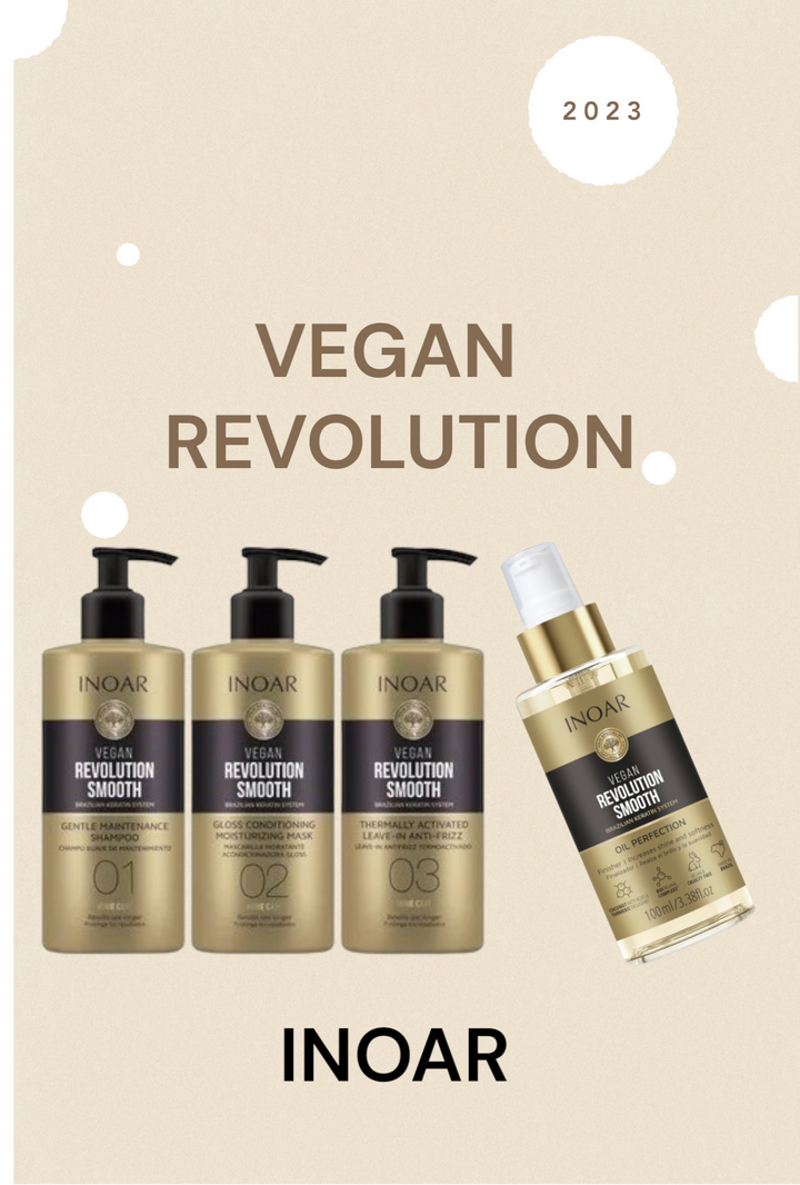 Inoar présente le système de kératine VEGAN REVOLUTION SMOOTH, le dernier traitement le plus lisse avec des présentations élevées et de nombreuses applications différentes.